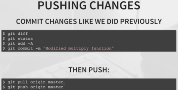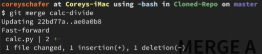 Now that the changes have been merged we can now push those changes to the remote master branch with the command:
