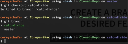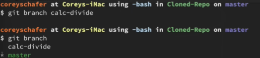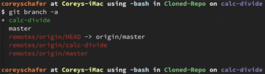 This will give us access to the calc-divide branch as shown here: