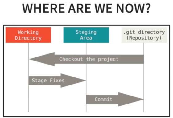 These are the three states we need to know about. Right now we are currently in the working directory state. This means that untracked and modified files will be here.