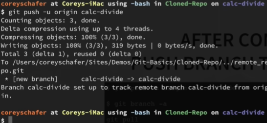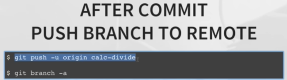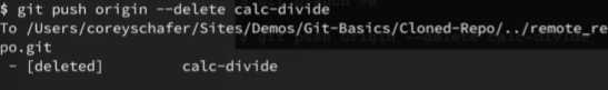 Now the syntax for pushing a branch to the remote repository for calc-divide is