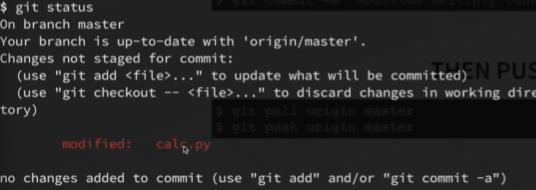 The output here shows us what was changed, in this case it was the calc.py function that changed.
