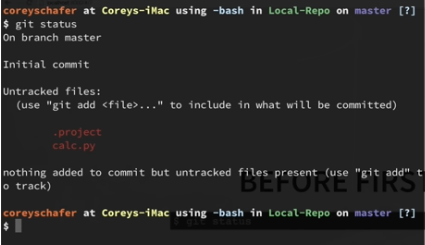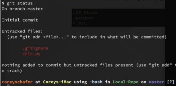 Now running git status will not show .project anymore, instead the .gitignore file appears